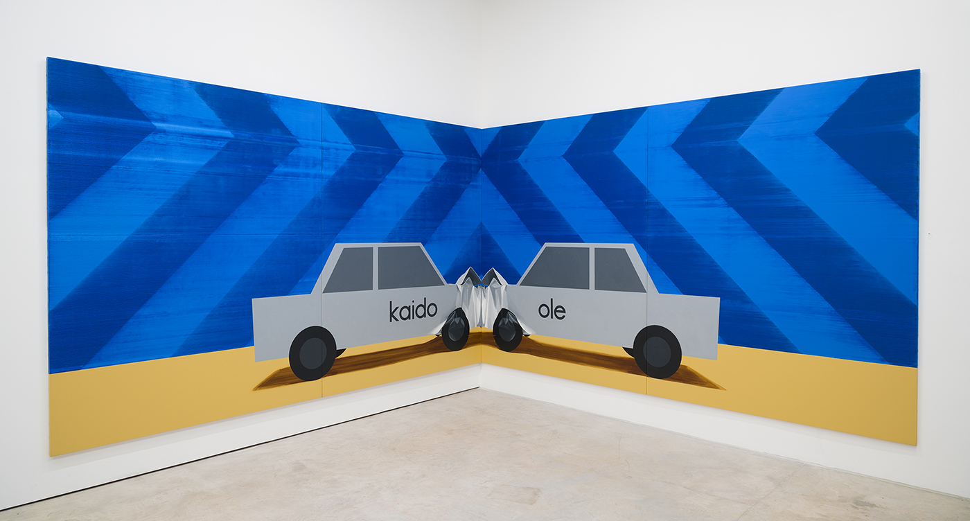 Speed II, näitusevaade 2022, õli ja akrüül lõendil, 240 × 760 cm, 2005